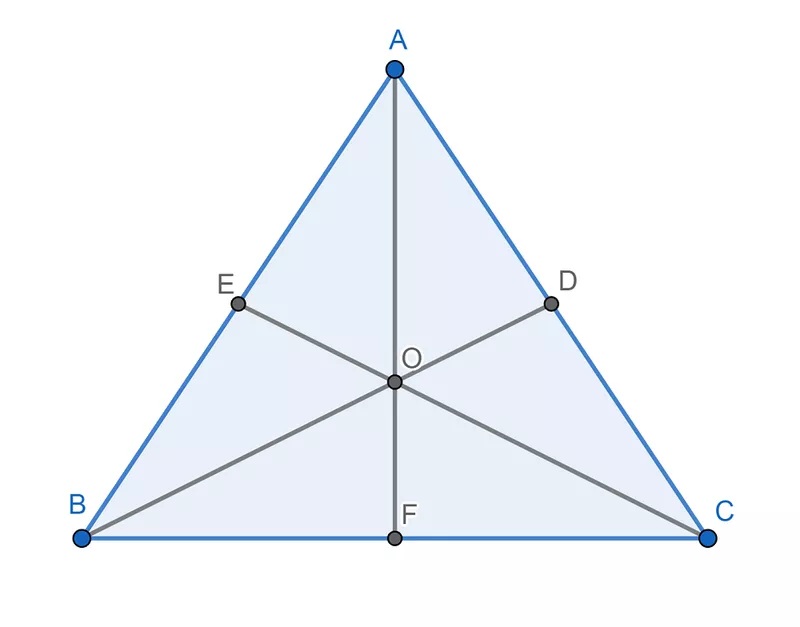 - Кожен трикутник має рівно три такі лінії, які обов’язково перетинаються в одній внутрішній точці.